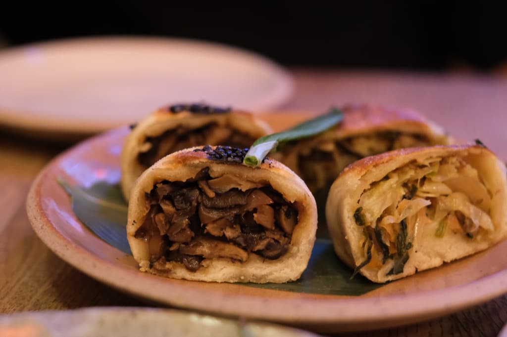 まずテーブルに登場したのは、長野県民のソウルフードである「おやき」とりんごのドレッシングを使用したヒラマサの焼き霜。デンマークでもよく使われるキノコや野菜がたっぷりと使用されたおやきはデンマークの人々にもすんなりと受け入れられ、今後定着していきそうな予感がします。