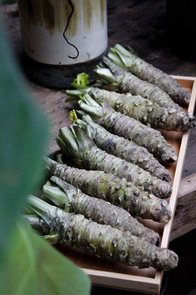 例えば、イタリアのフィンガーフードのひとつブルスケッタ。これを長野風に仕上げた「野沢菜のブルスケッタ」は、野沢菜とサーモン、そら豆をパンにトッピング、そこに添えた信州ワサビがアクセントとなって鼻から抜ける爽やかな香りに包まれます。「それぞれの食材の良さが引き立つように試作を重ねた一品です。フレッシュなワサビの香りがイタリアの方にとって新しい風味だと喜んでもらえたのは嬉しいですね」と、秋山シェフ。
