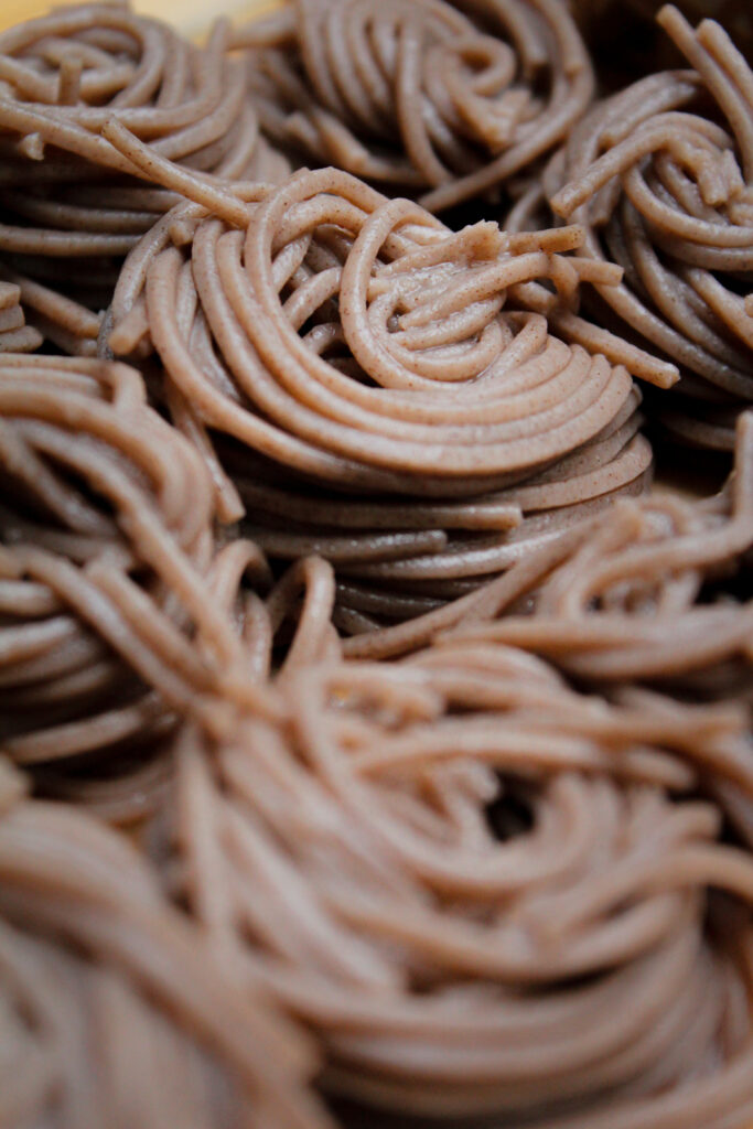 そして長野のソウルフードとも言うべき信州そば。イタリアにも蕎麦粉のパスタがあるので馴染みはあるものの信州そばならではの喉越しと香りの高さには驚いた様子。「お蕎麦に添えた天麩羅の衣にも軽く煎った蕎麦の実を入れ、風味が合うようにしています」という秋山シェフの強いこだわりが光ります。
