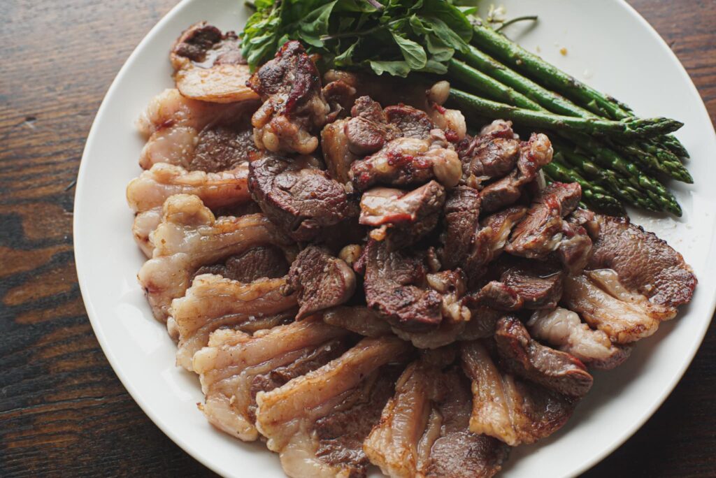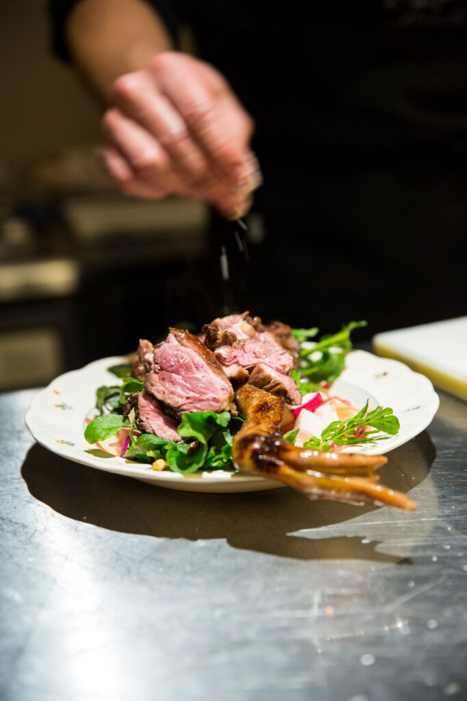20世紀後半になると、流通の発展や、畜産や養殖の発達とともに、肉や海産物が日常的に食されるようになる一方で、食の地域性は失われはじめます。しかし近年、里山の荒廃と共に、深山に生息していた野生動物の生息域が徐々に里山まで広がり、農作物や林産物、希少な高山植物までもその被害を受け森林の生態系そのものに影響が出るようになりました。こうした背景から、日本に古くからある食文化と共に、ジビエ肉がメインに登場するフレンチなど新しい食文化も加わり、ジビエとして知られるように。サクッとした鹿肉のカツから、とろとろに煮込んだ鹿肉のカレーまで、和洋問わず、ジビエ料理の幅は広がりを見せています。また、食と自然との関係性を見つめ直し、日々の暮らしに取り入れていくことは、厳しい自然の中を生き抜くために創造性を豊かにし、歩んできた先人たちにあらためて学ぶ機会にもなっています。