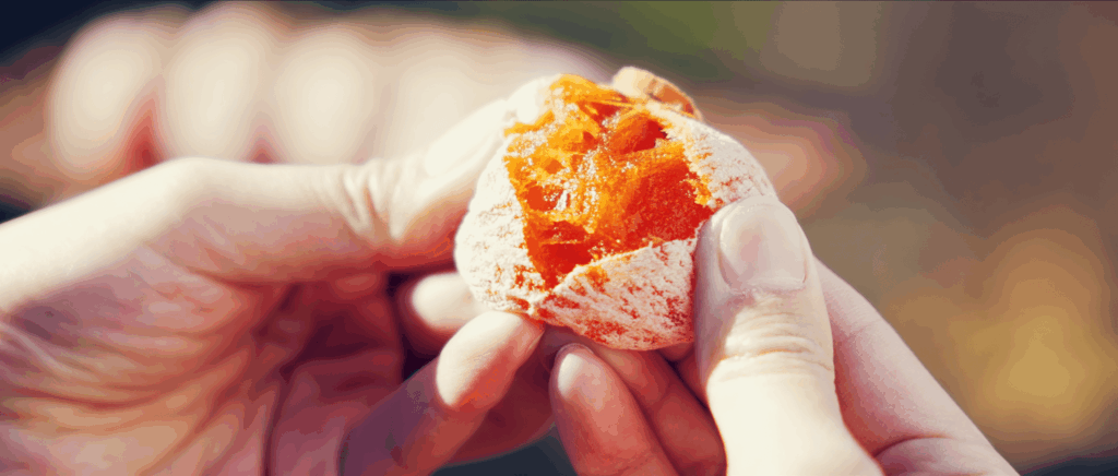 長野県南部の特定の地域でのみ生産される柿を使った干し柿(ドライフルーツ)が「市田柿」です。その独特の甘み、雪化粧をまとったような白い粉と鮮やかなオレンジのコントラストは、他の干し柿と一線を画します。和菓子として、また個性ある食材の一つとして、改めて注目を集めています。