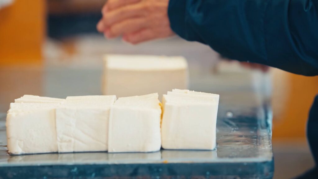 「凍り豆腐」とは、豆腐を屋外で凍らせ乾かした豆腐で、「高野(こうや)豆腐」や「 凍み(しみ)豆腐」とも呼ばれています。成分のほぼ半分がタンパク質で、寒乾の地、長野県だからこそ江戸時代から作り続けられているサステナブルフードです。
