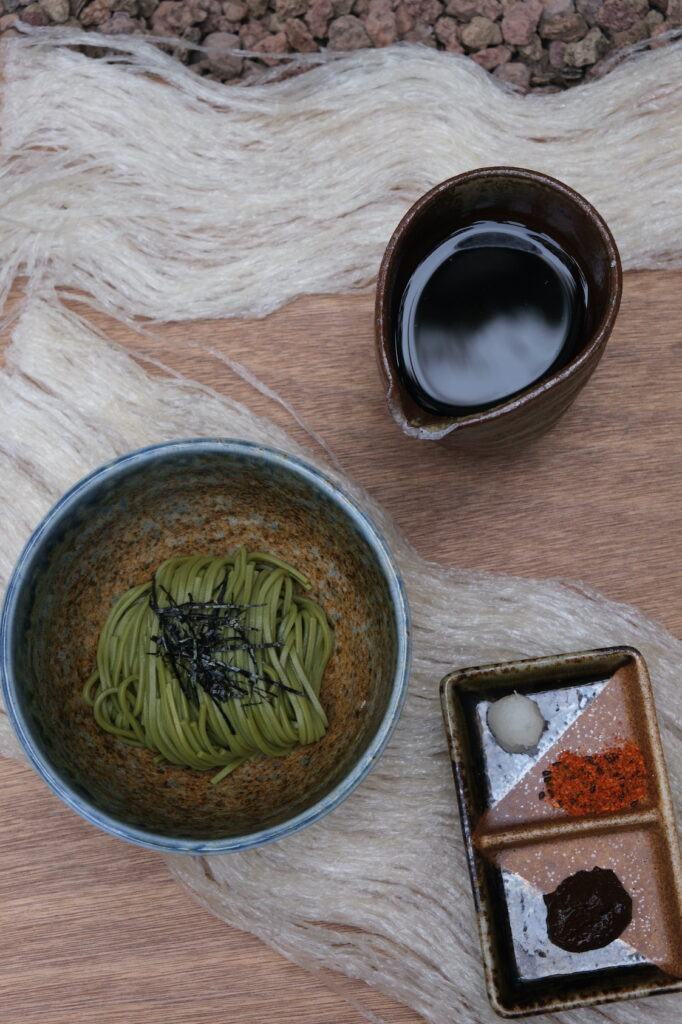 特に、長野県のソウルフードともいえるそばは、長野県南部の伊那市の郷土料理「行者そば」から着想を得て、3年間熟成した天然醸造の味噌、大根おろし、七味など、長野らしい調味料を添えて提供され、日本通のお客様も舌を鳴らしました。