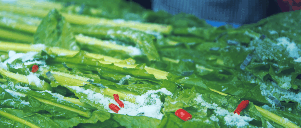 漬け込んだばかりの「浅漬け」は、シャキシャキ、青々としています。スキーシーズンが始まる12月中頃になると、「本漬け」が食べられるようになります。べっこう色をした「本漬け」は、発酵が進み風味豊かで深い味わいです。さらに発酵が進むと酸味が強くなりますが、野沢温泉村の人々はそれを捨てることはありません。酸っぱくなった野沢菜は、酒粕で煮てご飯のお供やお茶請けとして楽しみます。その他、地元では「刺身より美味しい」とも言われる夏の終わりに行われる蕪菜の種まきから数日経って間引いた若菜を湯がいたりおひたしにして食べる「間引き菜」など、野沢温泉村の人々は四季折々の食べ方で余すことなく野沢菜の味わいを楽しんできました。さらに野沢菜漬けは、日本食だけではなくピザやパスタ、チャーハンとの相性もよく、手を加えることによって一味も二味も違った方法でも食べる楽しさが広がっているのです。