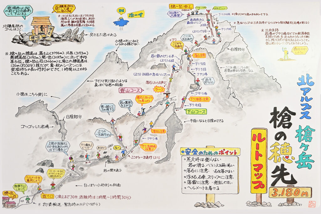 大きな山をB4,A3サイズの用紙に記載するので大変ですが、趣味で作成しているイラスト地図が、皆さんに見ていただけるような本になり、さらに信州の山や自然の素晴らしさ、そして安全登山ついて情報をお伝えできるというのもうれしい限りです。